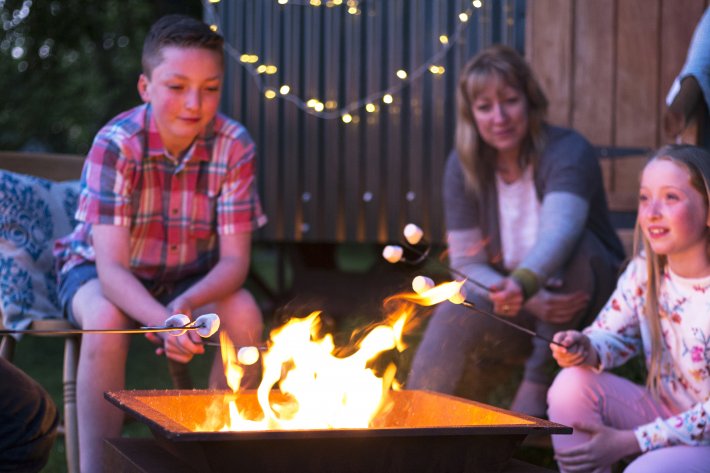 Grilla marsmallows och njut av eldens värmande lågor i din trädgård.
